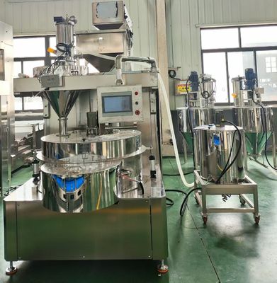 W automatycznej maszynie do powlekania, zasobnik podający z pneumatycznie sterowaną zasuwą dostarcza produkt do sterowanej przez PLC wagi. Precyzyjnie odmierzane partie bazy są podawane do komory powlekania, która obraca się, aby dostarczyć bazę do ściany komory powlekania.