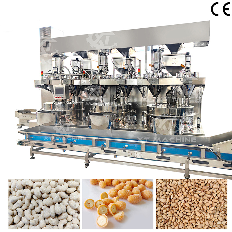 Ta w pełni automatyczna panierownica nadaje się do panierowania różnych orzechów, fasoli, orzeszków ziemnych i innych produktów spożywczych w postaci granulatu. Cały system wykorzystuje sterowanie PLC dla łatwości obsługi i znacznych oszczędności pracy. Maszyna do panierowania orzeszków ziemnych jest zbudowana ze stali nierdzewnej, co ułatwia czyszczenie i konserwację, i charakteryzuje się wysoką wydajnością cieplną. Wewnętrzna dmuchawa suszy gotowy produkt gorącym powietrzem, zapobiegając jego sklejaniu się.