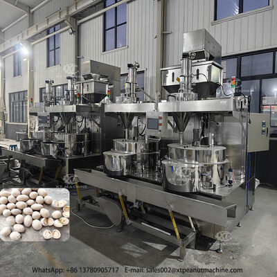 Ten zaawansowany automatyczny system powlekania przetwarza orzeszki ziemne, orzechy nerkowca, pestki dyni i inne produkty spożywcze. Cechy obejmują zasobnik podawania materiału bazowego z pneumatycznie sterowaną zasuwą i wagą sterowaną przez PLC dla precyzyjnego pomiaru.